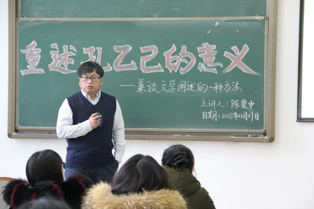 12月27日,文学院在教学主楼222教室举办“重述《孔乙己》的意义——兼谈文学阐述的一种方法”讲座。讲座由哈尔滨师范大学文学院教授、博士生导师陈爱中主讲,文学院汉语言文学专业2017级全体学生参与。