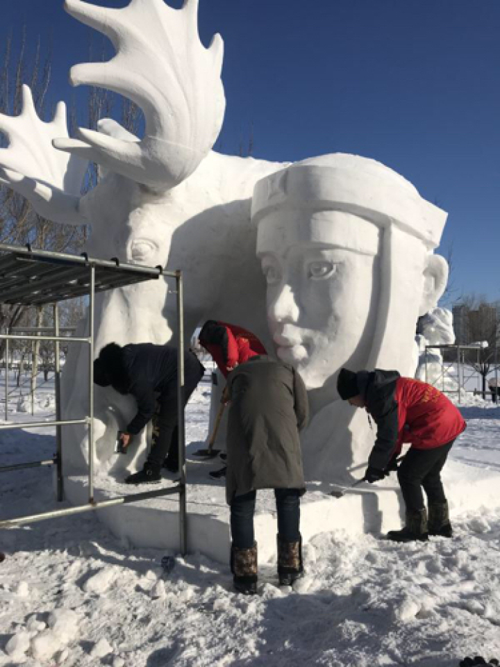 龙头新闻讯 12月19日,由黑龙江省教育厅主办的第四届"龙江雪韵" 黑龙江省大学生雪雕比赛在大庆落下帷幕。4天时间里,来自全国20家单位的30支代表队,围绕"中国梦·冰雪情"主题,分别在长3米、宽3米、高3.5米的人造雪块上进行雪雕创作。
