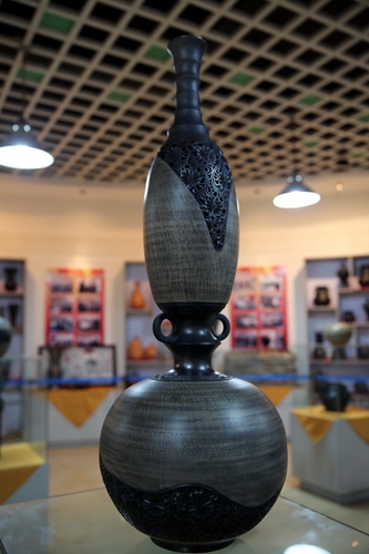 陶器历史悠久,距今约7000年至5000年的仰韶文化遗址中已发现了许多精美陶器。李方海教授及365英国上市官网油陶研究所的研究人员,在充分研究继承原始“灰陶”,借鉴发展传统“黑陶”工艺的基础上,创新出“油陶”。将地下深层的黄粘土加入转井岩芯等内涵多种矿物质,制作成稀有陶土,并首创石油原料“熏烟渗碳”技术。所研发出的系列油陶产品,具有“坚硬如石、黑亮如油、内含大量活性炭等典型特点,获得国家发明专利及多项外观专利。