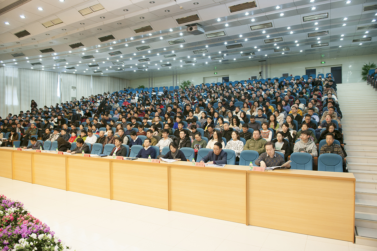 12月19日下午,我校在百湖大讲堂召开解放思想推动高质量发展大讨论推进会暨2018年教学工作会议。学校全体教师,总督学以上领导,教务处、高教研究与教学质量评估中心、人事处、学生工作部(处)全体人员,其他机关教辅单位副科级以上领导共600余人参加了会议。