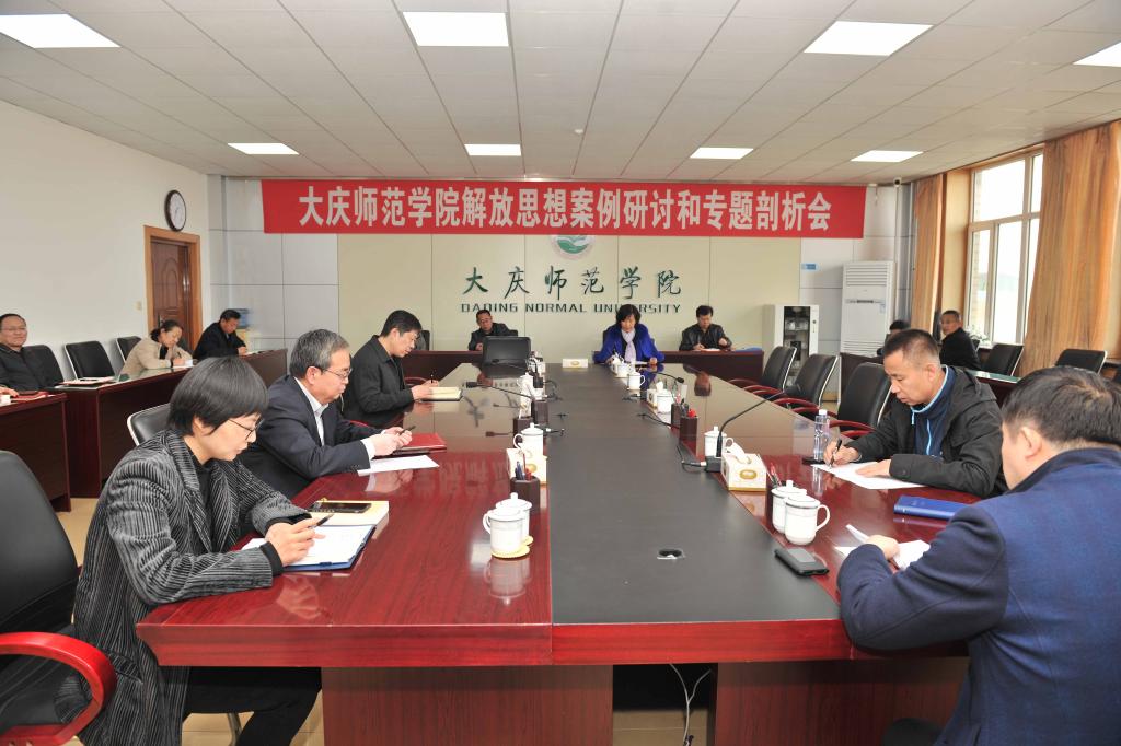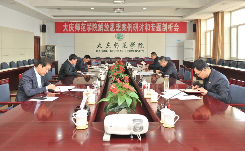 解放思想案例研讨和专题剖析会议分三组召开,即学校党委理论学习中心组成员,机关副处级以上干部,二级学院副处级以上干部。(宣传统战部供稿)