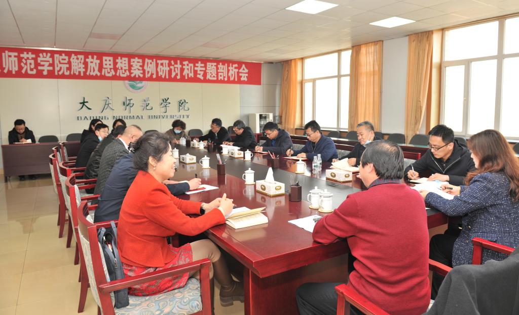 4月28日下午,我校在主楼733会议室召开解放思想第一次案例研讨和专题剖析会议,以“在强化改革创新意识上聚焦发力”为研讨主题,深入学习了《东北师范大学打造思想政治教育新高地的探索与实践》《上海促进青年群体就业的探索实践》等2个案例。会议由党委书记赵科学主持,2名领导班子成员进行了案例研讨和专题剖析。