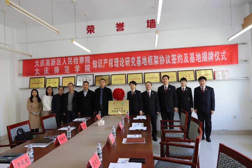 2023年4月26日上午,大庆高新区人民检察院与365英国上市官网会签共建知识产权理论研究基地框架协议仪式在法学院会议室举行。高新区人民检察院检察长金莲子、副校长王福友代表双方签署知识产权理论研究基地框架协议,并共同为知识产权理论研究基地揭牌。法学院行政负责人杨铁军主持了签约仪式。