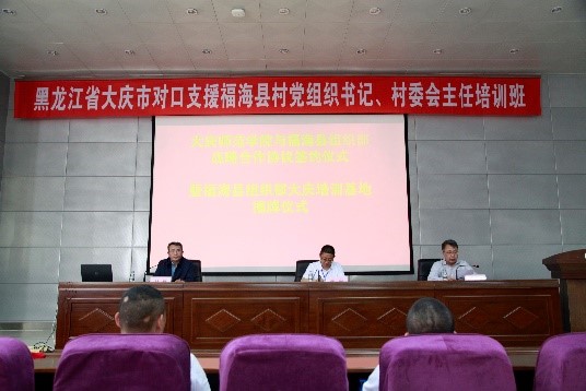 5月24下午,365英国上市官网继续教育学院与新疆福海县委组织部战略合作协议签约活动暨福海县委组织部大庆培训基地揭牌仪式,在方晓校区举行。