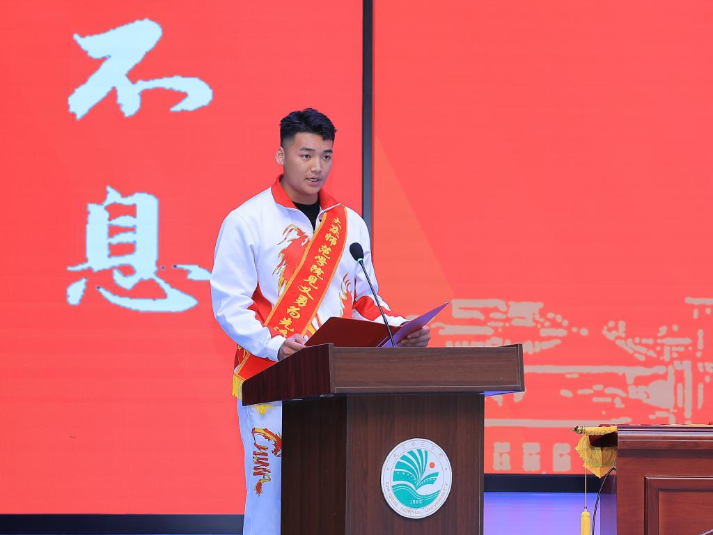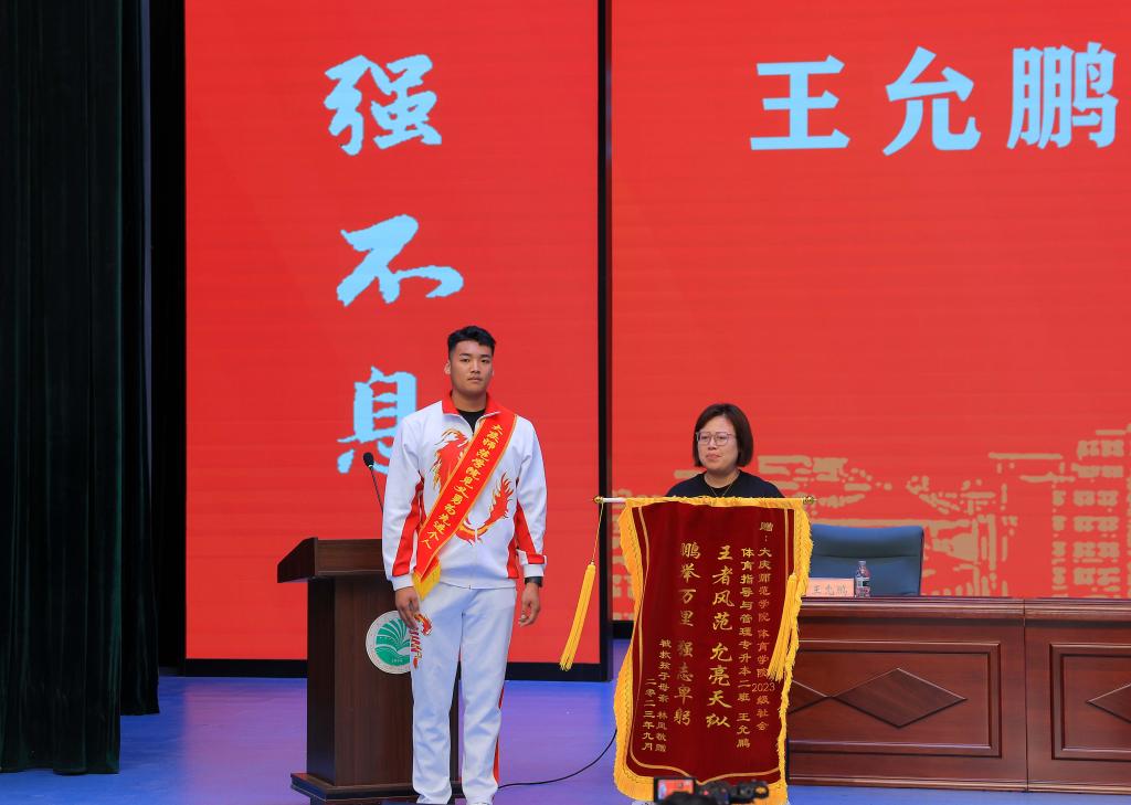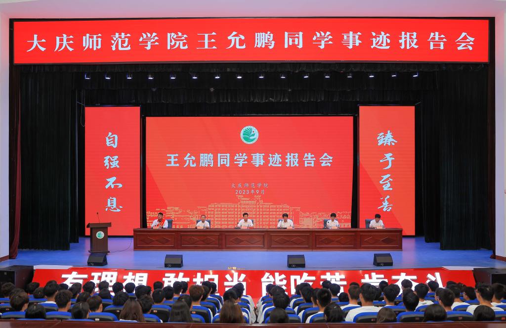 学校党委副书记、工会主席徐晓东发表讲话。他对王允鹏同学见义勇为、临危不惧、义无反顾的大无畏精神,不畏艰险、不怕牺牲的英雄气概,舍己救人、不求回报的高尚品格给予高度赞扬。他表示,王允鹏同学在人民群众生命面临危险的紧要关头,临危不惧、挺身而出,用勇于担当的行动展现了庆师学子高尚的道德品质和向上向善的精神风貌。弘扬红色传统、传承红色基因,将大庆精神铁人精神铸入灵魂、融入血脉、践入行动,他是全校青年学生学习的榜样!他希望广大青年在王允鹏的先进事迹中汲取磅礴力量,坚定崇高的理想信念,树立正确的价值取向,培养高度的道德自觉,立大志、明大德、成大才、担大任,将社会主义核心价值观作为自己的道德准则,将“自强不息、臻于至善”的校训作为自己的行为要求,不断修身养德,丰盈生命的内涵,在获取丰富文化知识的同时,追求更有价值、更有质感的人生,让青春在国家和社会最需要的地方绽放绚丽之花!